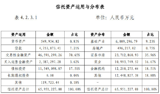 年报数据显示,交银国信2024年实现合并报表口径下营业收入13.96亿元,净利润7.92亿元。截至2024年末,交银国信总资产191.23亿元,信托资产规模6595.12亿元。从信托资产分布来看,证券市场占比最高,为35.96%,此外其他、金融机构、实业分别占比18.88%、18.51%、16.67%。